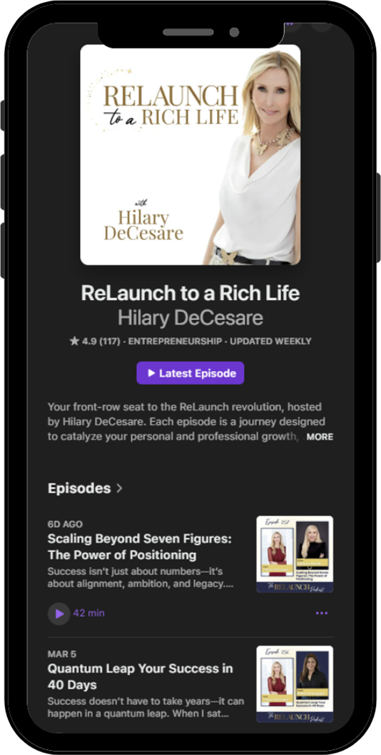 Hilary DeCesare’s mission? To help you bridge the gap between where you are and the rich life you’re meant for—game-changing moments guaranteed. With over 250+ podcast episodes, Hilary has welcomed powerhouse guests like Seth Godin, Simon Sinek, John Gray, John Assaraf, Marie Diamond, and many more.